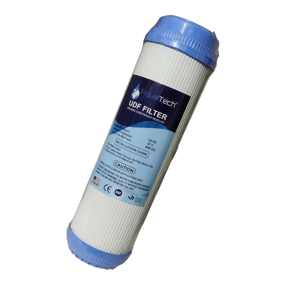 This highly absorbent material removes chlorine, organic chemicals, unpleasant tastes and odors, and other impurities from your water. This type of carbon filter is made from compressed carbon powder, offering a larger surface area for enhanced contaminant removal compared to GAC.