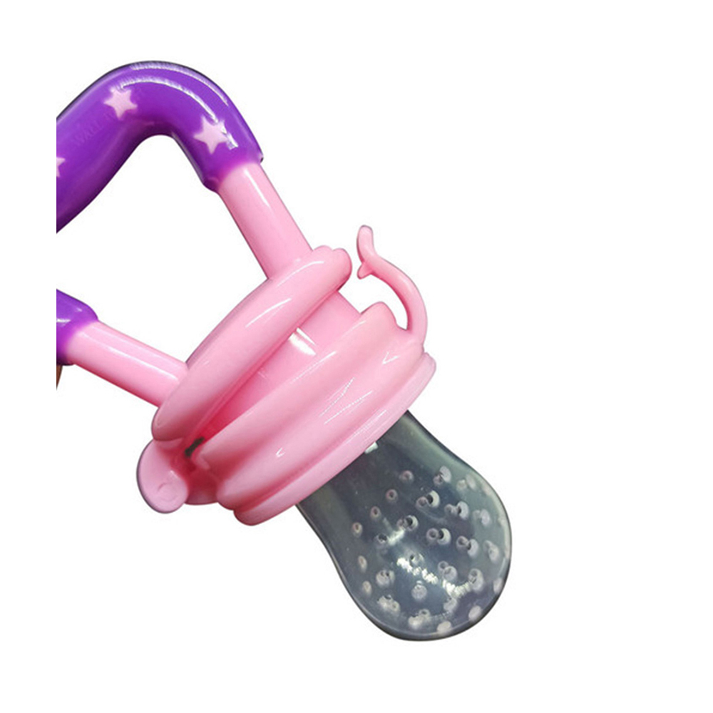 A baby fruit pacifier fresh food feeder teething toy is a type of pacifier that has a mesh pouch attached to it. The mesh pouch can be filled with fresh fruits, vegetables, or other soft foods. The baby can then suck on the pacifier and eat the food through the mesh.