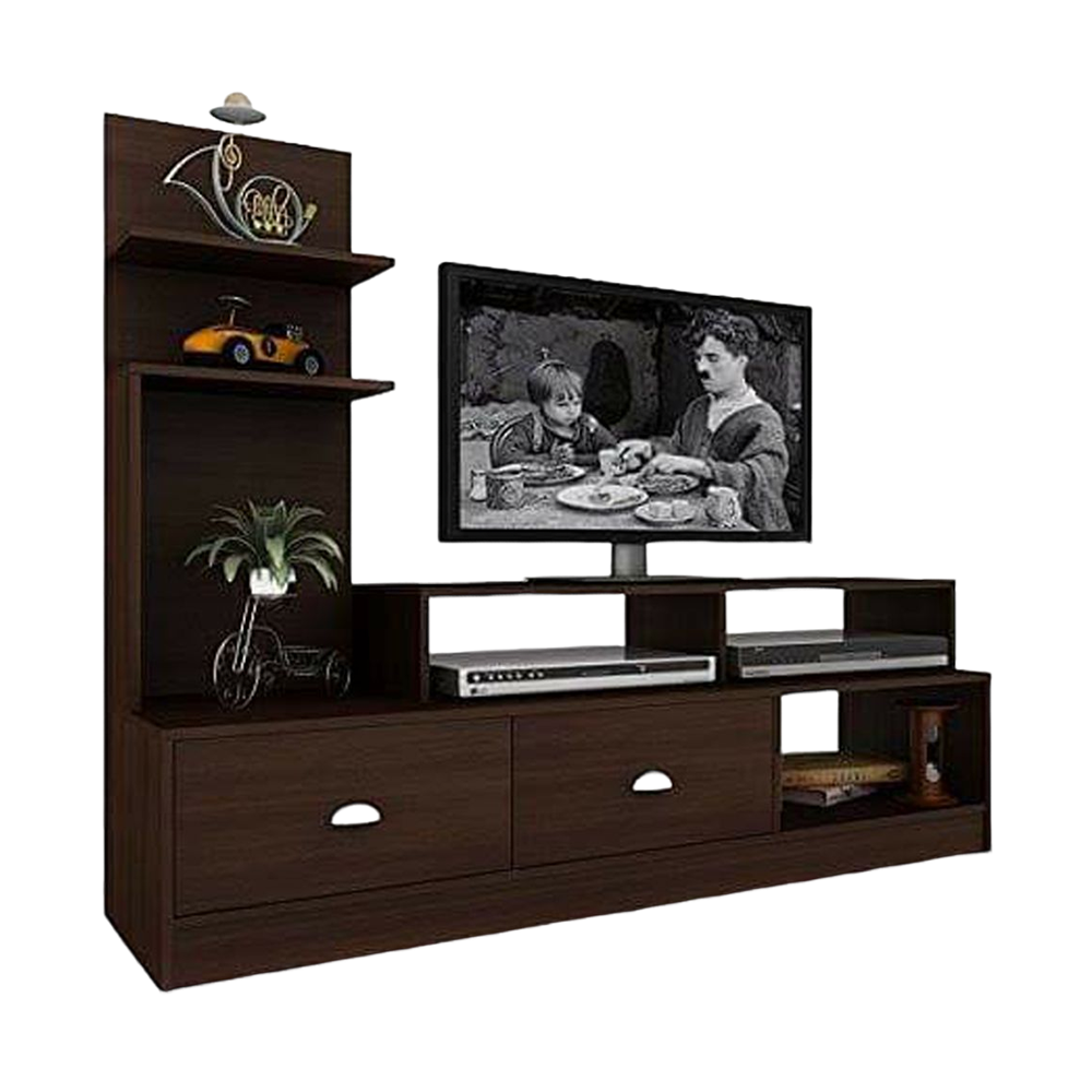 MDF Wood TV Trolley - 5 Ft - Dark Brown - FHTV1. Made by Solid Wood & OAK Veneered Process Wood (MDF). Wooden structure seasoned & chemically treated for longevity, finishing with long-lasting Italian SAYERLACK Lacquer.