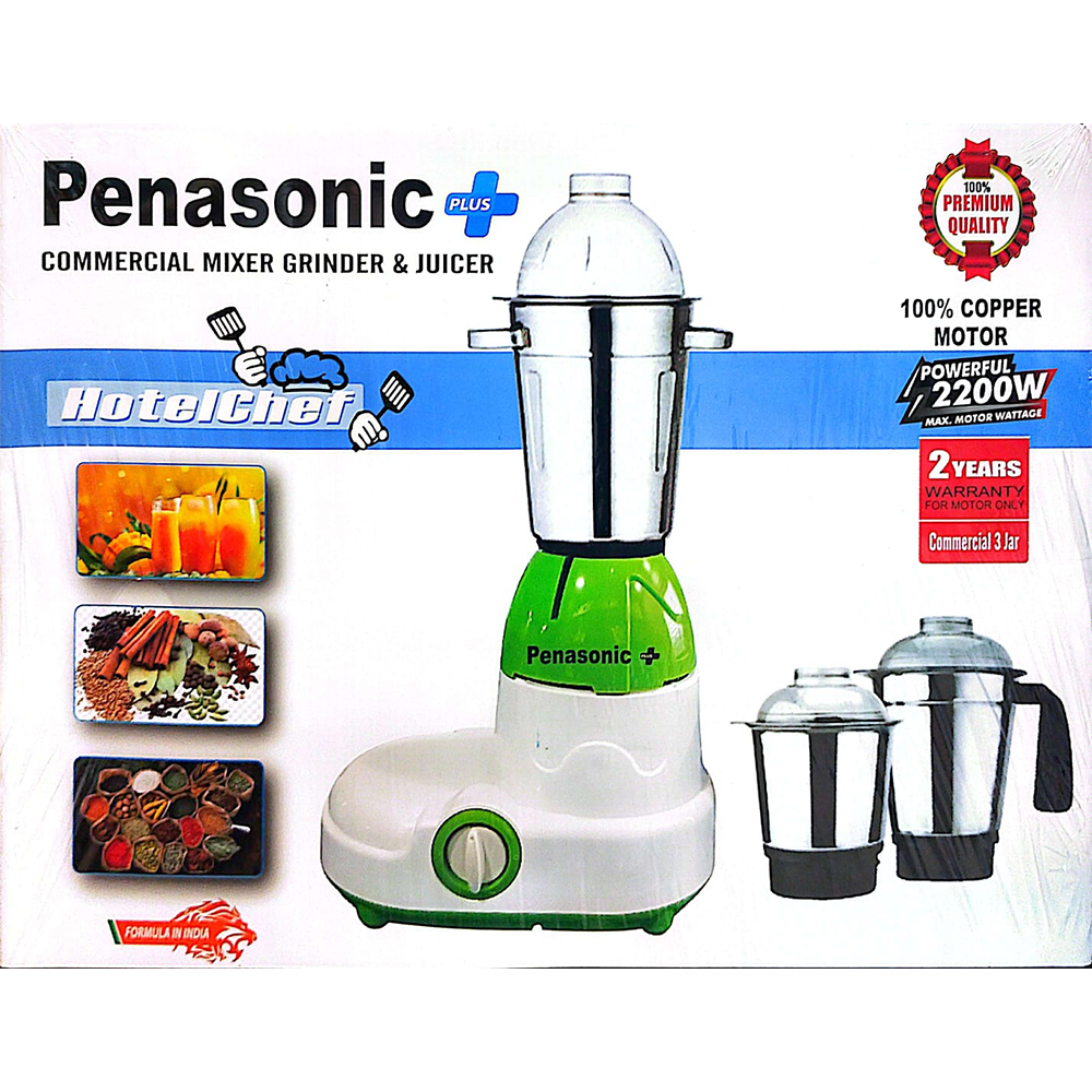 The Panasonic Hotel Chef 3-in-1 Mixer Blender is a powerful and heavy-duty kitchen appliance designed for commercial and home use. With a robust 2200W motor, it efficiently handles blending, grinding, and mixing, making it ideal for tough ingredients and high-volume tasks.