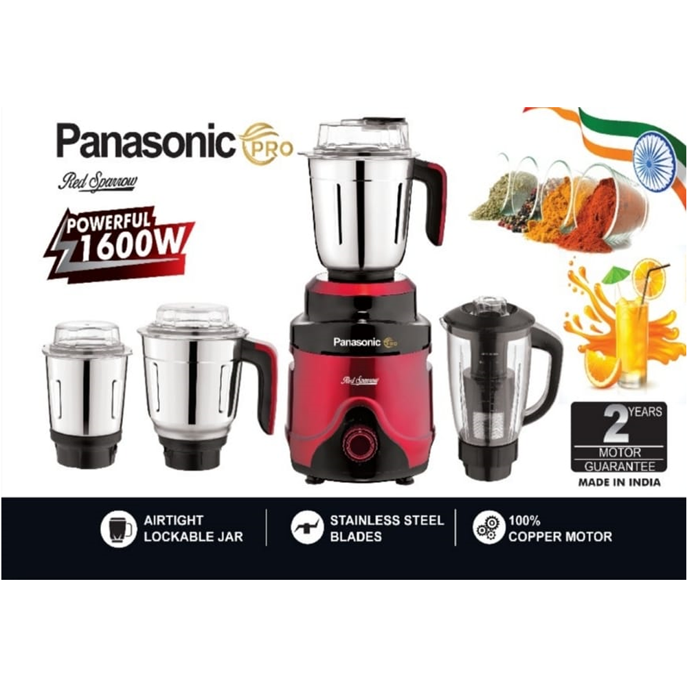 Make your cooking faster, easier, and smarter with the Panasonic Pro Red Sparrow Mixer Grinder. Powered by a 1600W 100% Copper Motor, it ensures high performance for grinding spices, making pastes, blending juices, and preparing batters. With airtight lockable jars and stainless steel blades, this mixer grinder guarantees durability, safety, and smooth results every time.