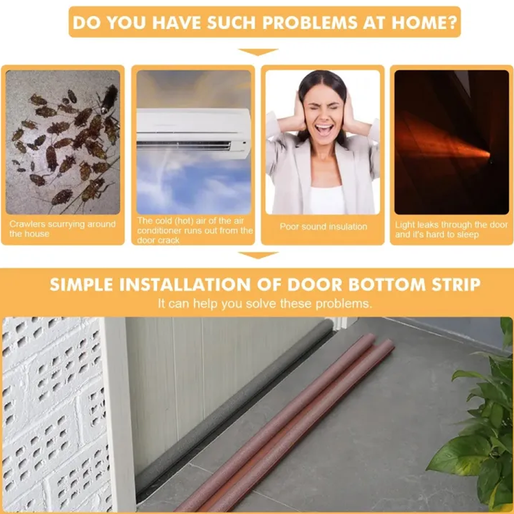 The Door Bottom Sealing Strip and Dust Stopper - 37 Inch is a weather stripping strip that is designed to prevent drafts, dust, and insects from entering your home through the bottom of your doors. It is made from a soft, flexible material that is easy to cut to size and install. The strip has a self-adhesive backing that makes it easy to apply to your door.