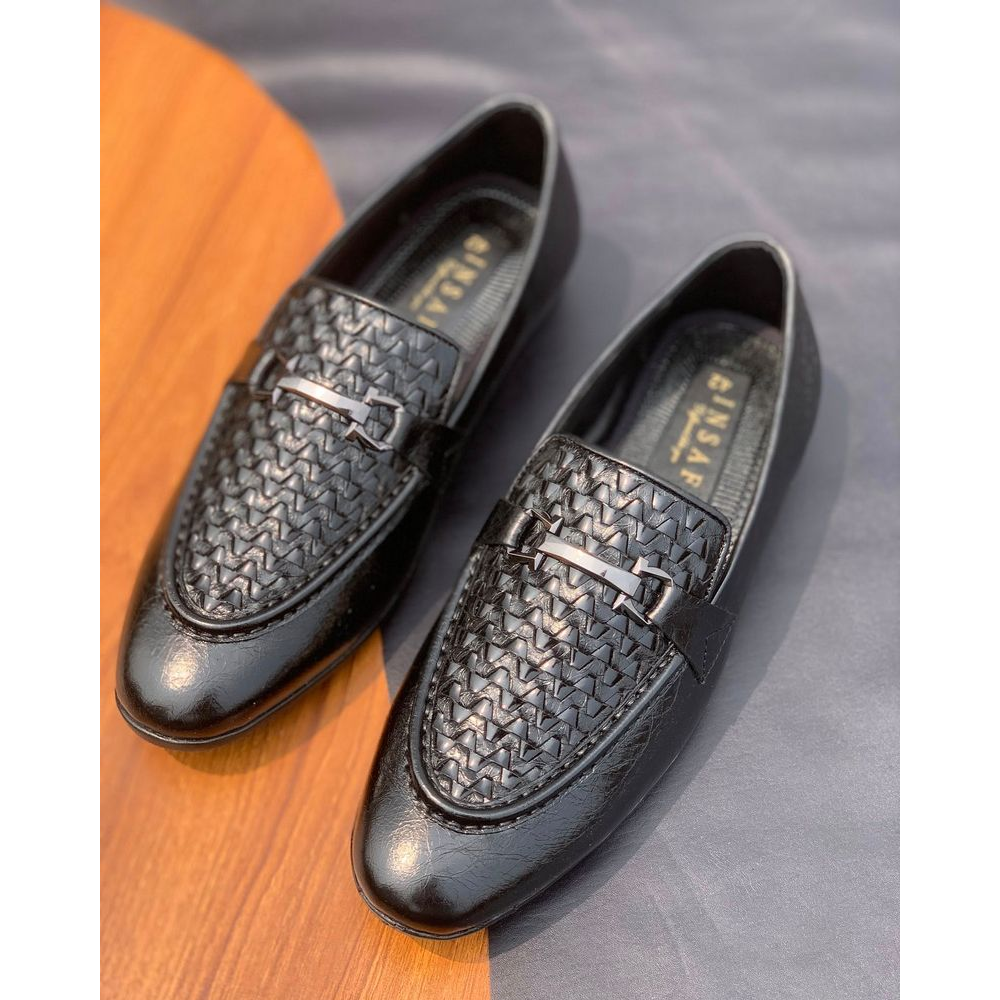 Step up your style game with these Woven Charm Loafer Shoes in classic black. Designed with a sleek woven upper pattern, durable sole, and elegant metal detailing, these loafers bring the perfect blend of sophistication and comfort. Whether for office, parties, or casual outings, they ensure a classy and confident look.