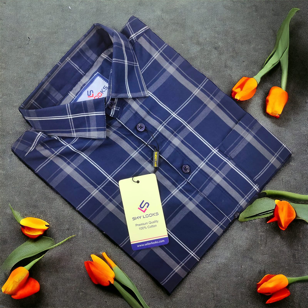 Cotton Full Sleeve Check Shirt for Men - Blue